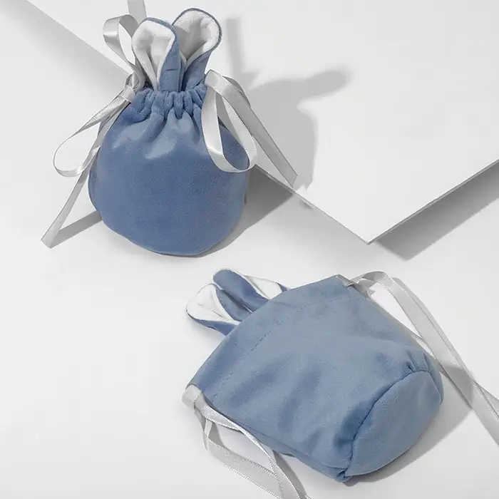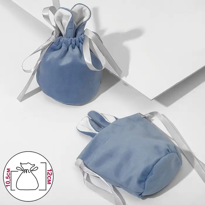 Мешочек бархатный «Зайчик», 11×12.5 см, голубой