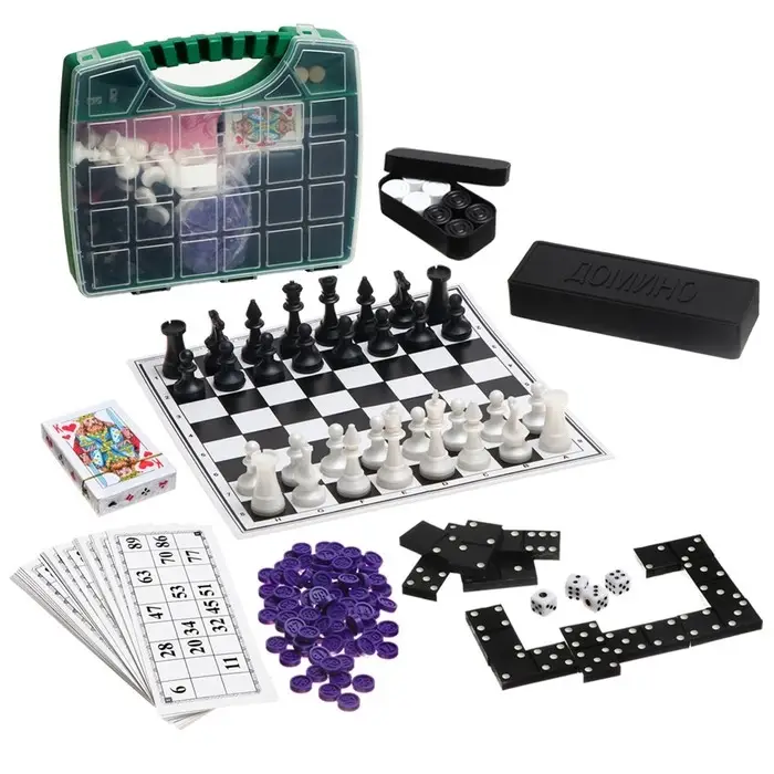 Настольные игры 6 в 1 "В дорогу" шахматы, лото, домино, шашки, карты 54 шт, кости игральные