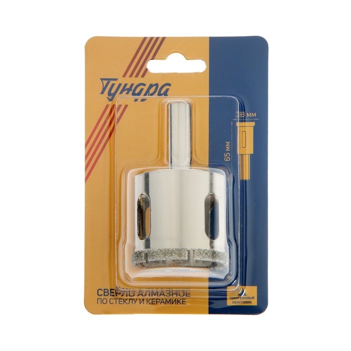 Сверло алмазное по стеклу и керамике ТУНДРА, трехгранный хвостовик, 65 х 65 мм