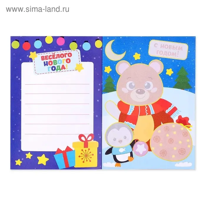 С «Новогодними аппликациями» малыш сделает праздничные открытки для семьи и друзей. Ребёнок вырежет фигуры, напишет послания и порадует близких яркой зимней карточкой.