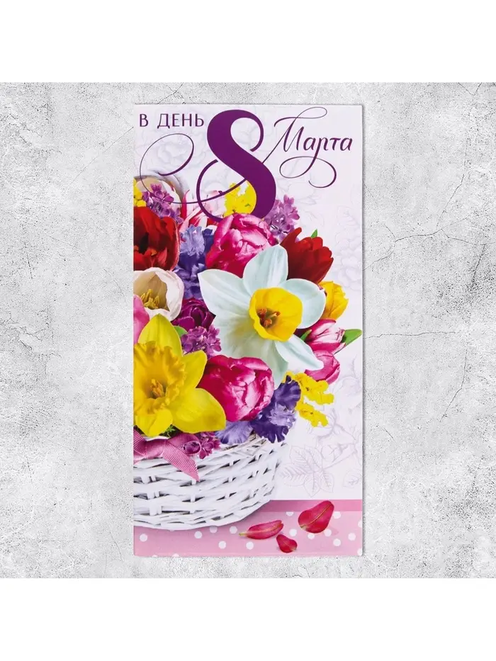 Конверт для денег «В день 8 марта» корзина, 16.5 х 8 см