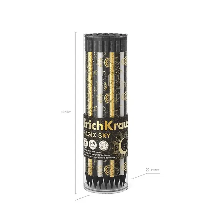 Карандаш чернографитный, ErichKrause «Magic Sky», HB, d=2.2 мм, с ластиком, трeхгранный, в тубусе, дерево, микс