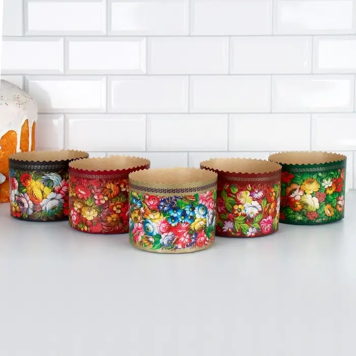 Форма бумажная для кулича «Жостово», 13.4×10 см, разноцветная