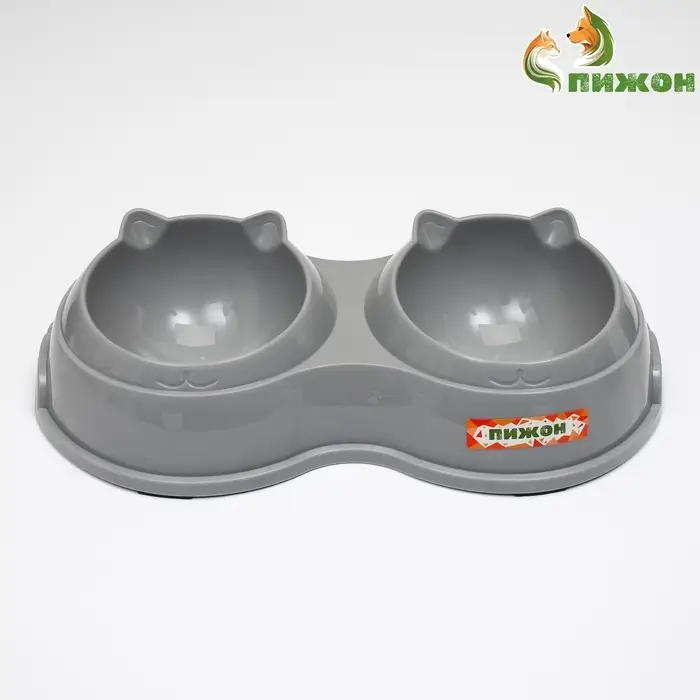 Миска двойная пластиковая, 25 х 14 х 5 см, серая