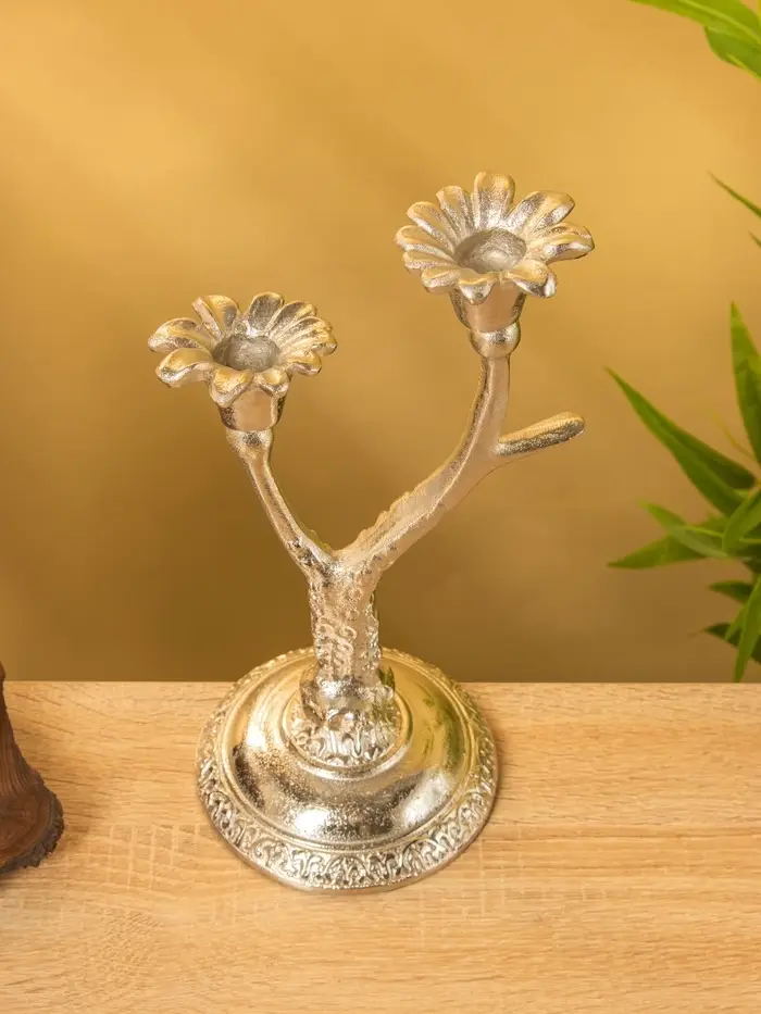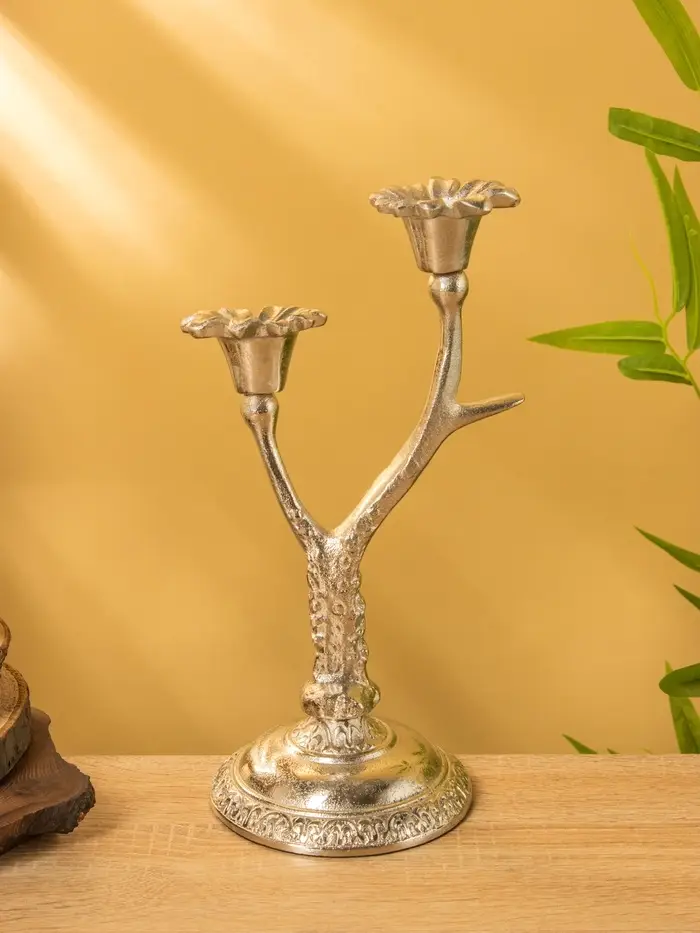 Подсвечник на 2 свечи «Дуэт», 12×15×29 см, алюминий