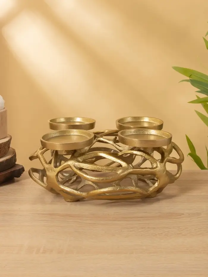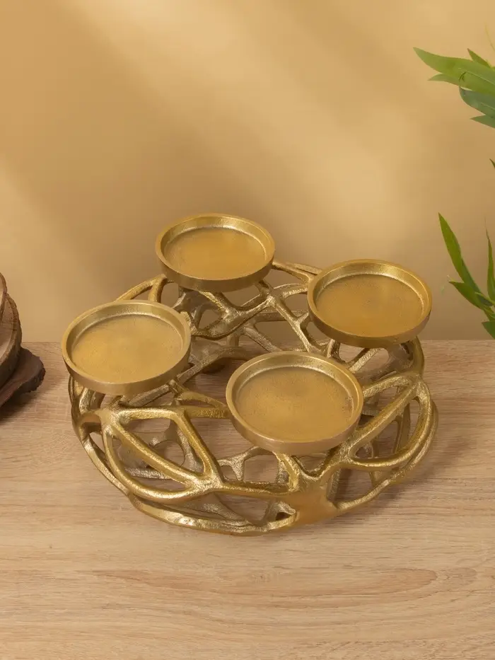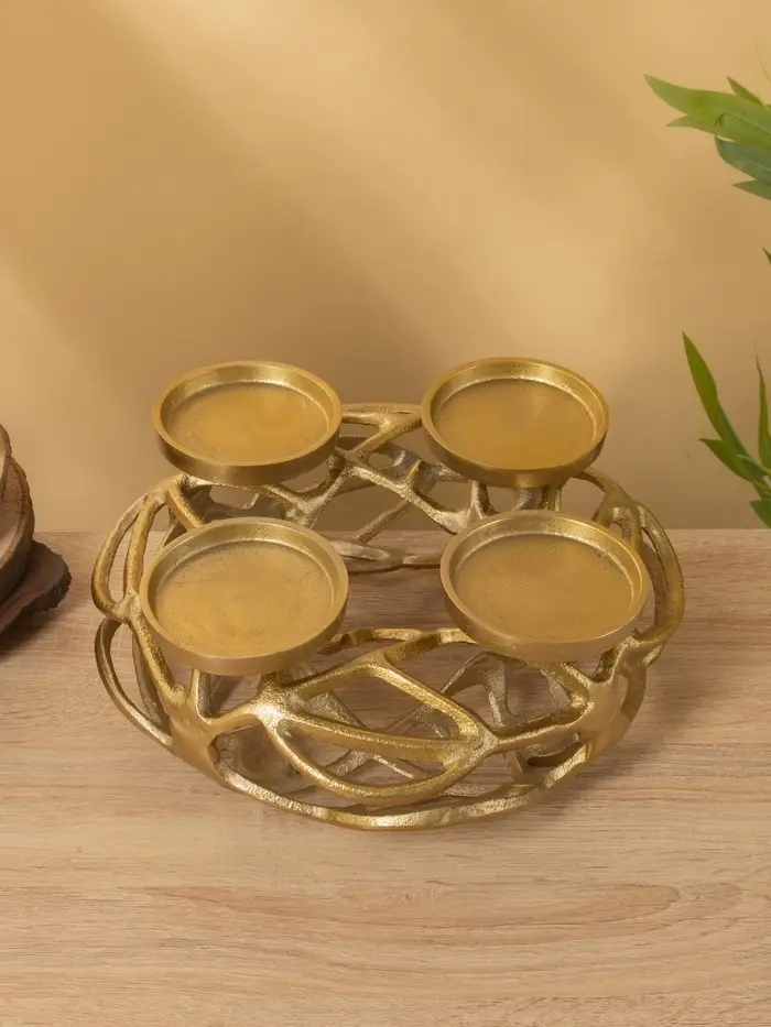Подсвечник на 4 свечи «Венок Сплетение», 29×29×11 см, алюминий
