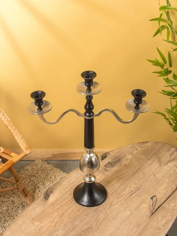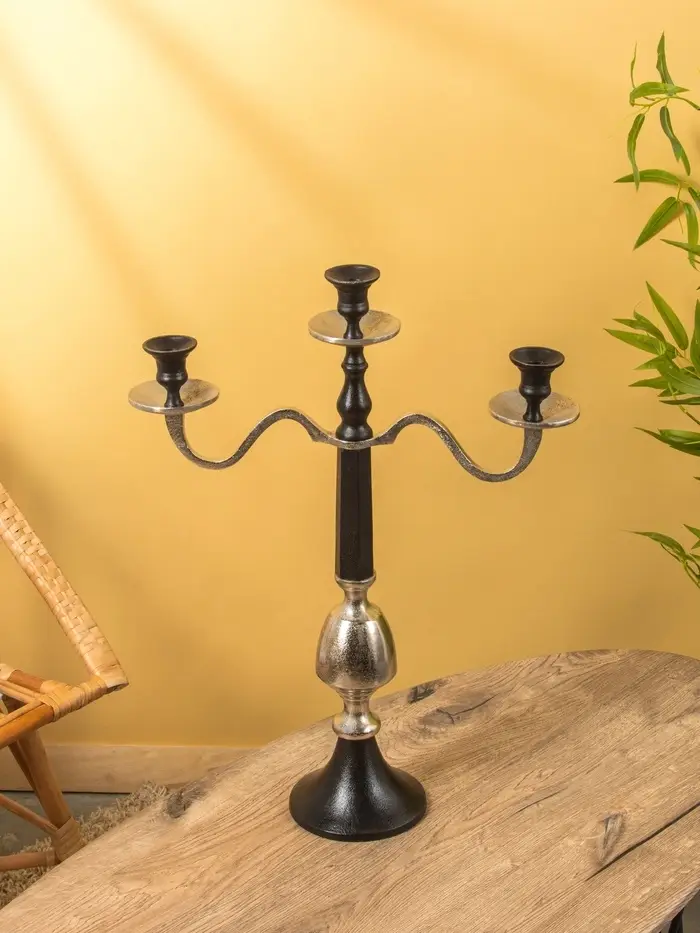 Подсвечник канделябр на 3 свечи "Тёмная Вуаль" алюминий 46х15х62 см