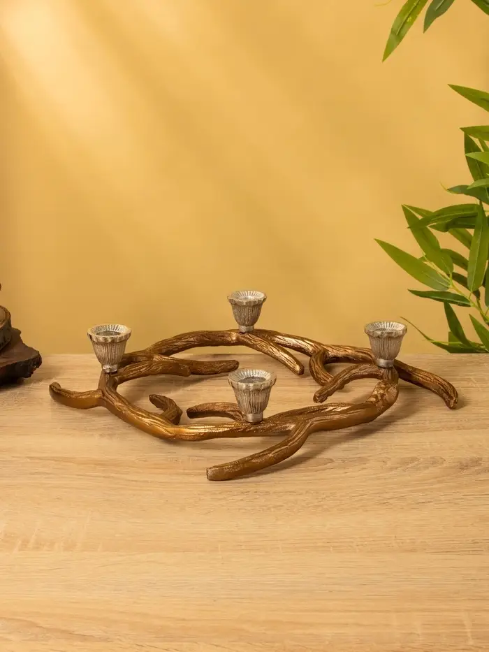Подсвечник на 4 свечи «Медные рога», 27×27×6 см, алюминий