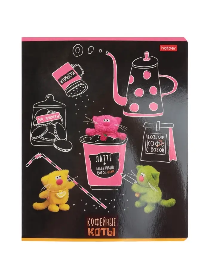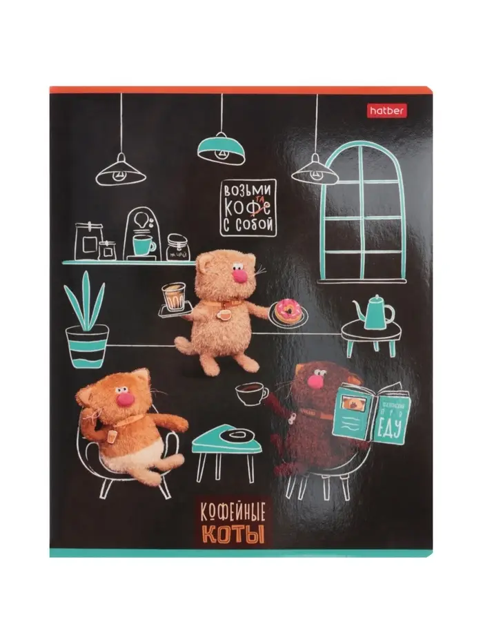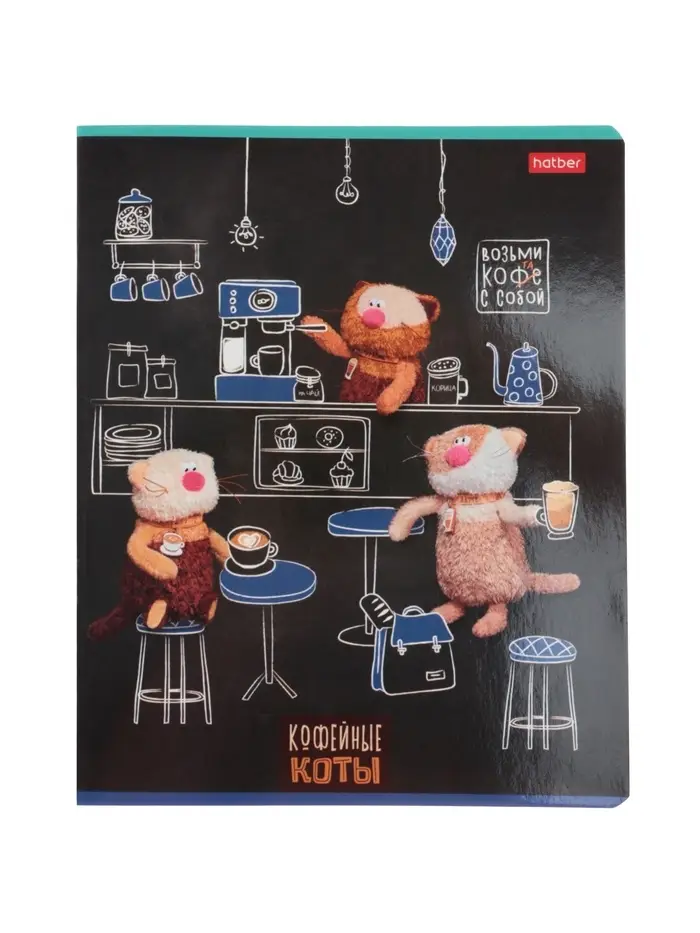 Тетрадь 48л кл Hatber "Кофейные коты", на скобе, скругл углы, 60-65г/м² 5В МИКС