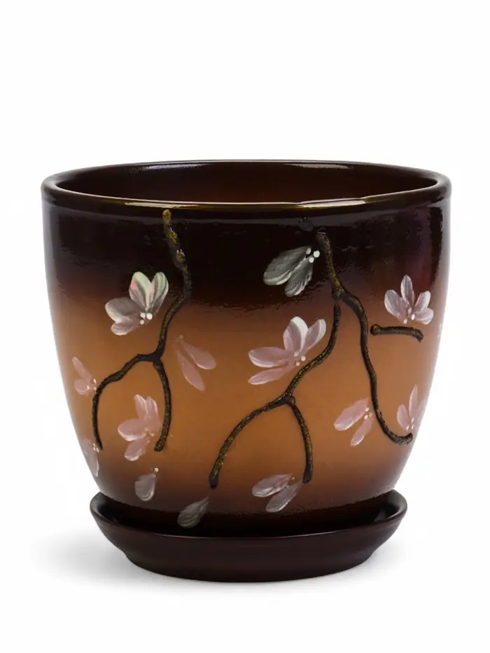 Горшок цветочный поддоном 2,5 л, керамика, Миндаль (М)