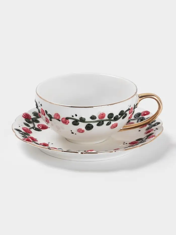 Начните свое утро с изящной чайной пары «Цветочный Лепесток». Этот утонченный набор, состоящий из чашки и блюдца, подарит вам минуты наслаждения и спокойствия, превращая обычное чаепитие в настоящий ритуал.