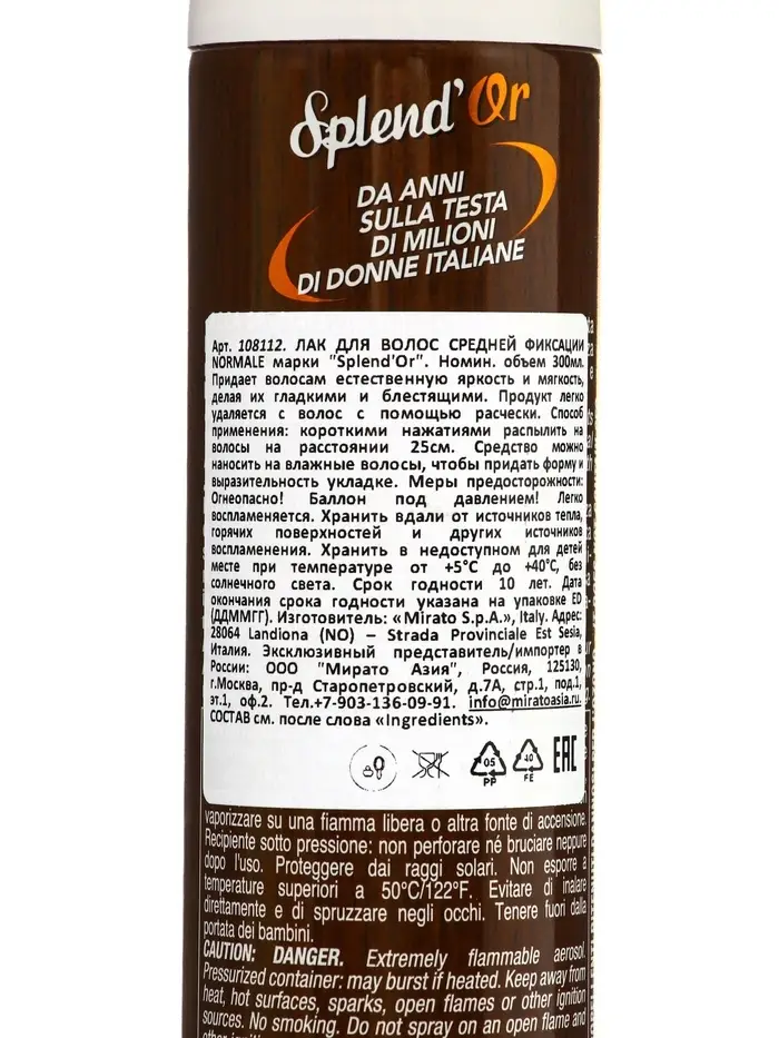 SPLENDOR Лак для волос сильной фиксации NORMALE 300 мл