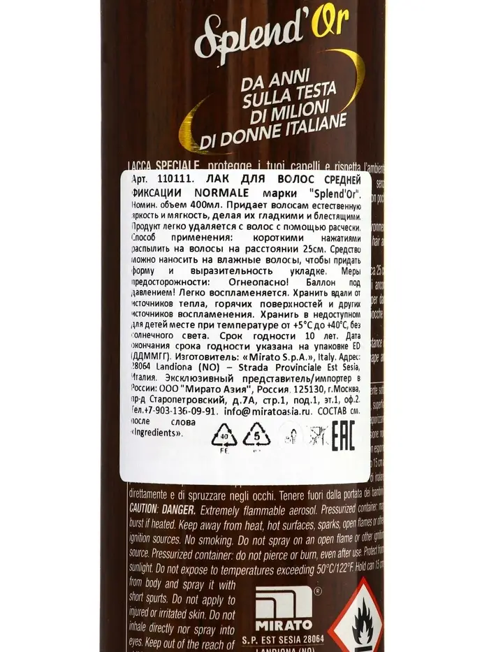 SPLENDOR Лак для волос средней фиксации NORMALE 400мл