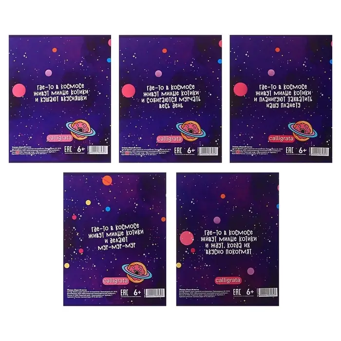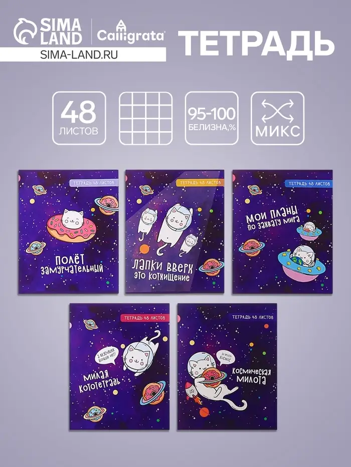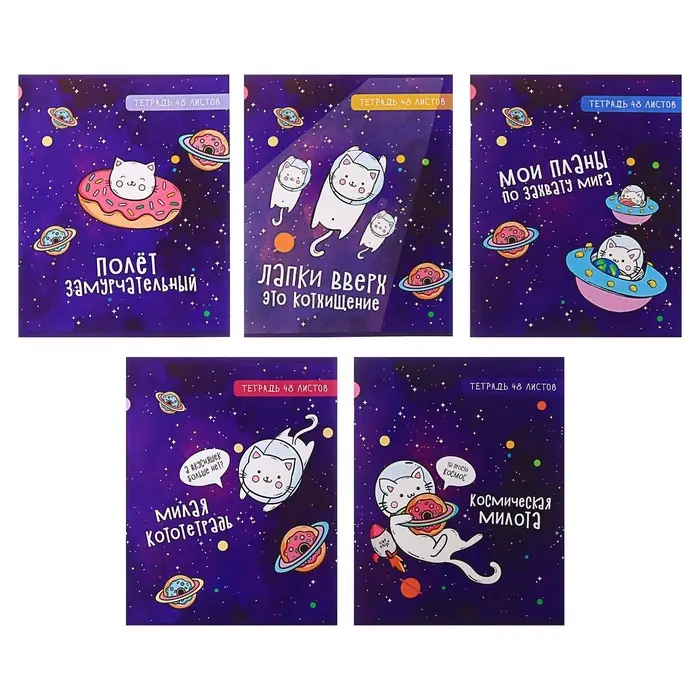 Комплект тетрадей из 5 штук, 48 листов в клетку Calligrata "Meow", обложка мелованный картон, блок офсет