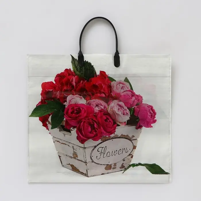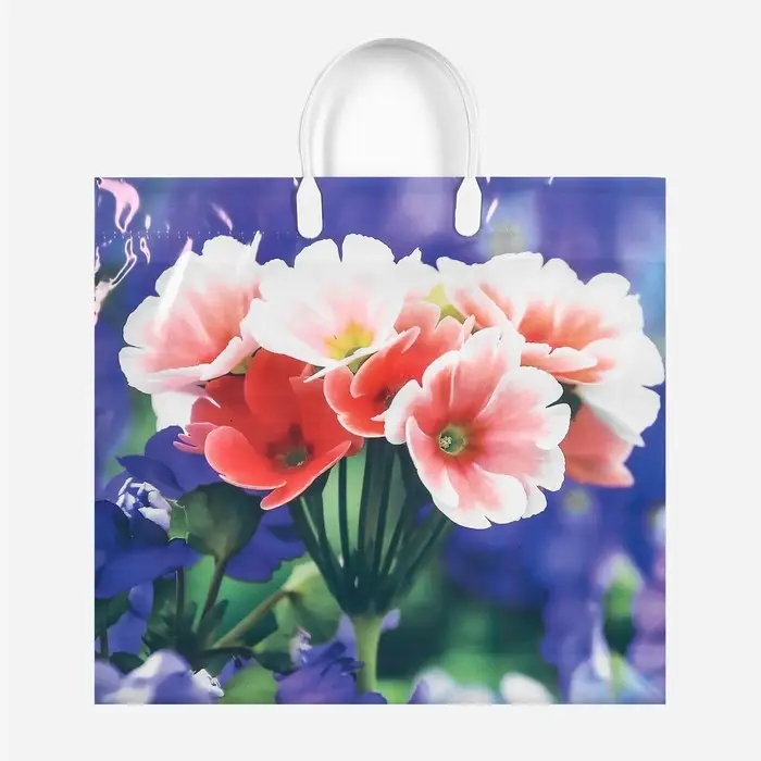 Пакет "Ассорти цветы", полиэтиленовый с пластиковой ручкой, МИКС 100 мкм 38 х 35 см