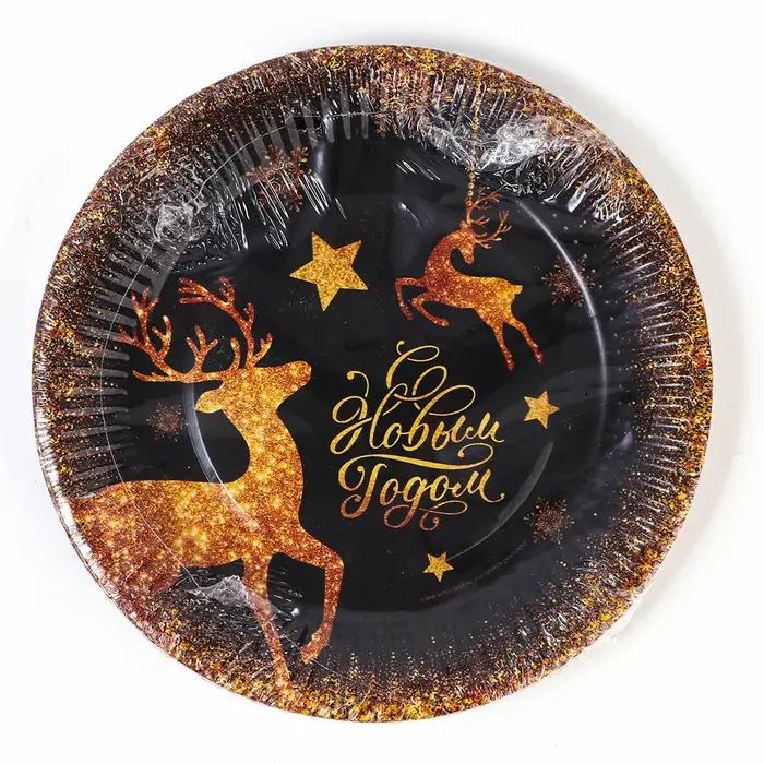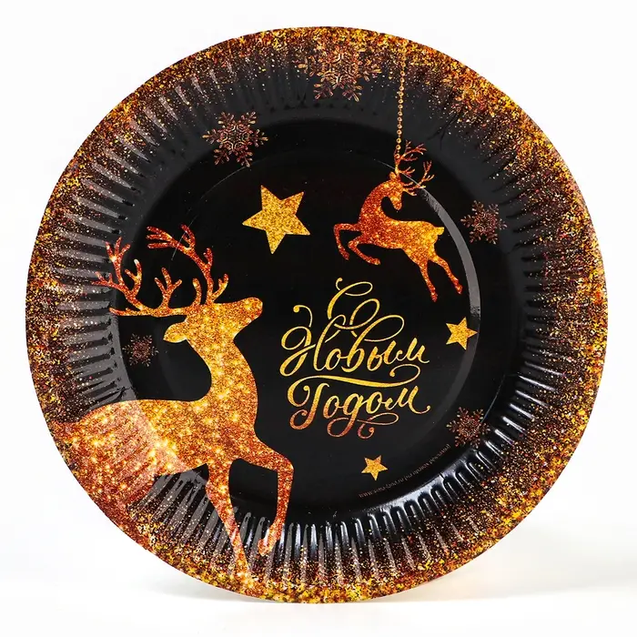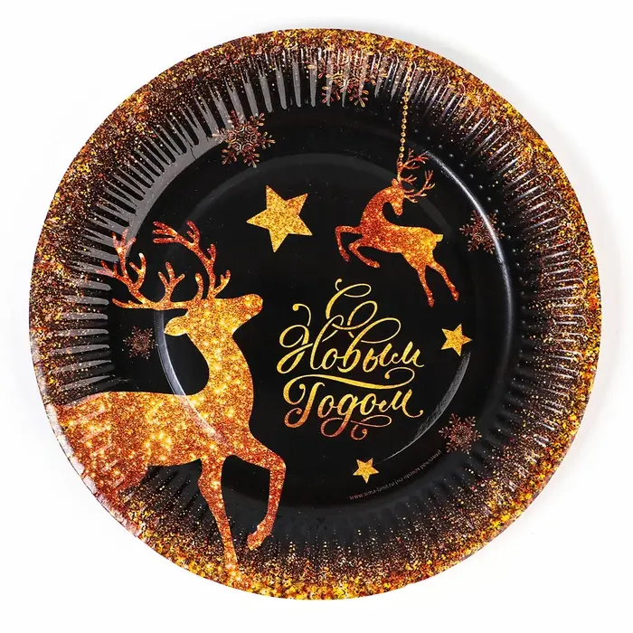 Тарелка одноразовая бумажная «С Новым годом», золотые олени, 18 см