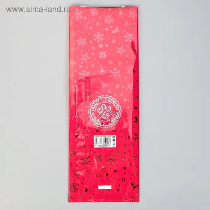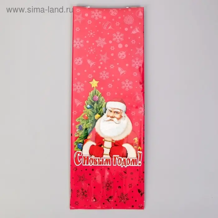 Пакет полиэтиленовый подарочный "Новогодние подарки", с завязками, 15*23см.