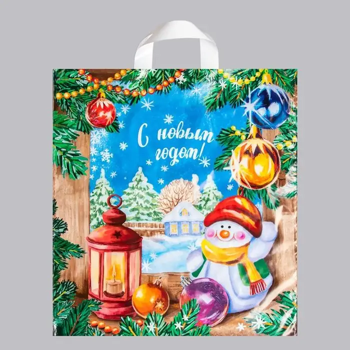 Пакет полиэтиленовый с петлевой ручкой, прочный с оригинальным рисунком.