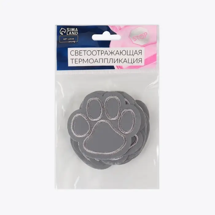 Светоотражающая термонаклейка «Лапка», 6 × 5,5 см, цвет серый, цена за 1 штуку
