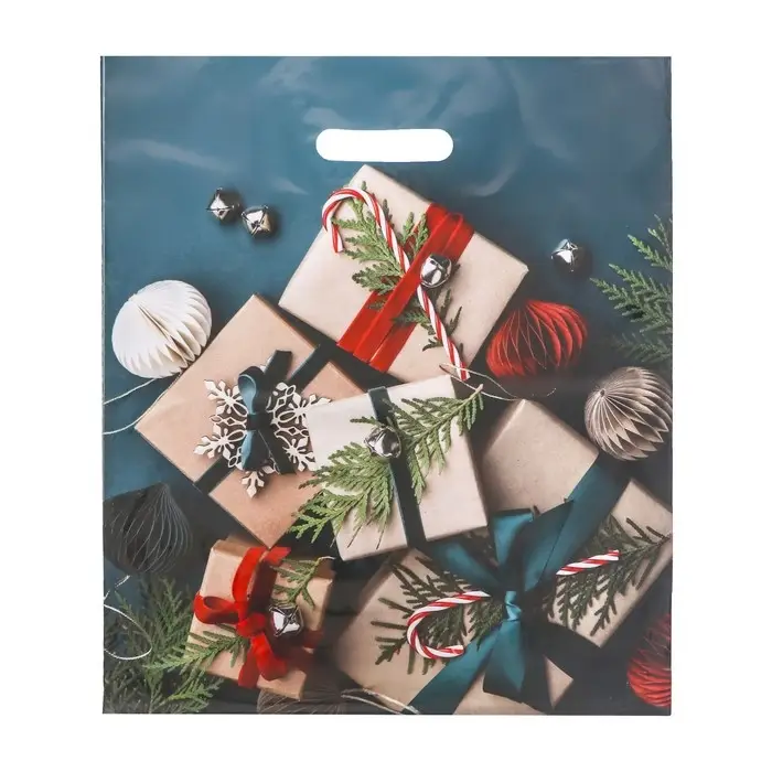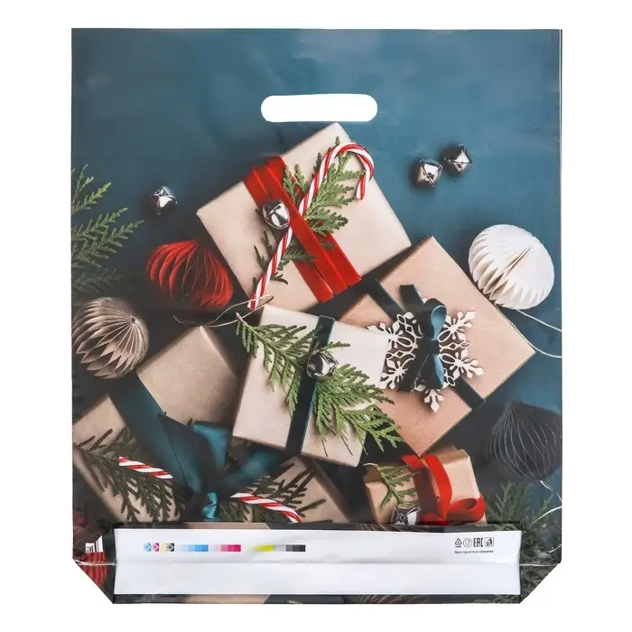 Пакет "Подарки на зеленом", глянец полиэтиленовый с вырубной ручкой, 38х45 см, 60 мкм