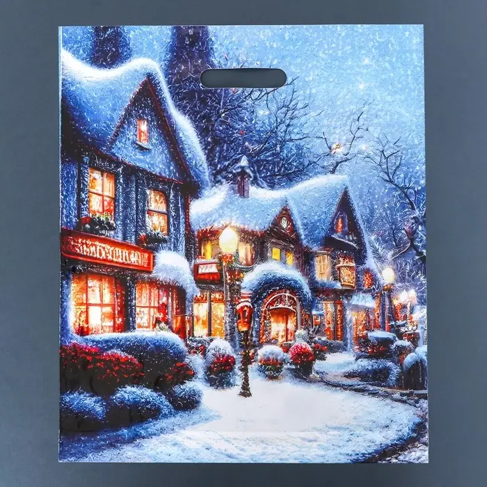 Пакет "Рождественская ночь", глянец полиэтиленовый с вырубной ручкой, 38х45 см, 60 мкм