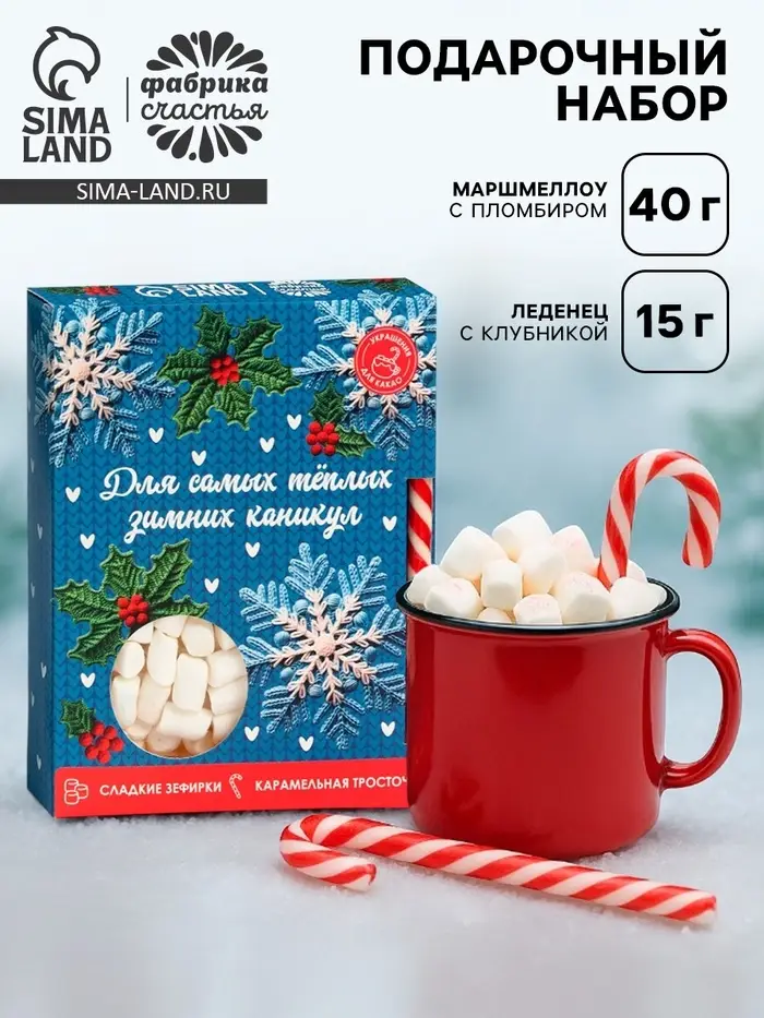 Подарочный набор новогодний «Для тёплых каникул»: маршмеллоу, вкус: пломбир 50 г., леденец, вкус: клубника, 15 г.