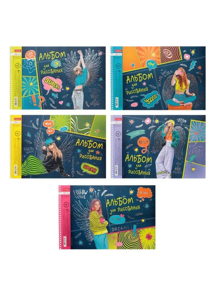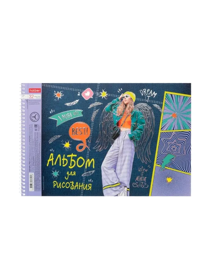 Альбом д/рис А4 32л на спирали Hatber "Street Style", мат лам, 3D-фольг, перфорац, 5В МИКС