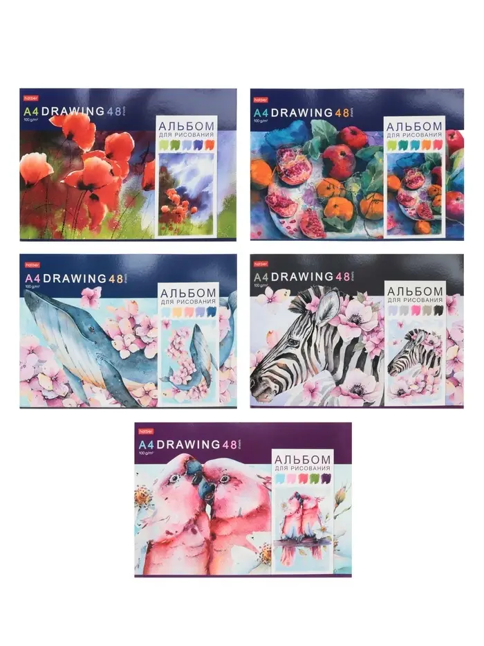 Альбом д/рис А4 48л на скобе Hatber "Акварельная палитра"