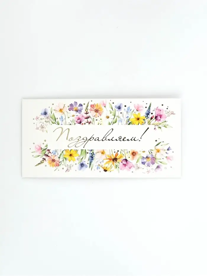 Конверт для денег "Поздравляем!", цветы, тиснение, 16,5 х 8 см