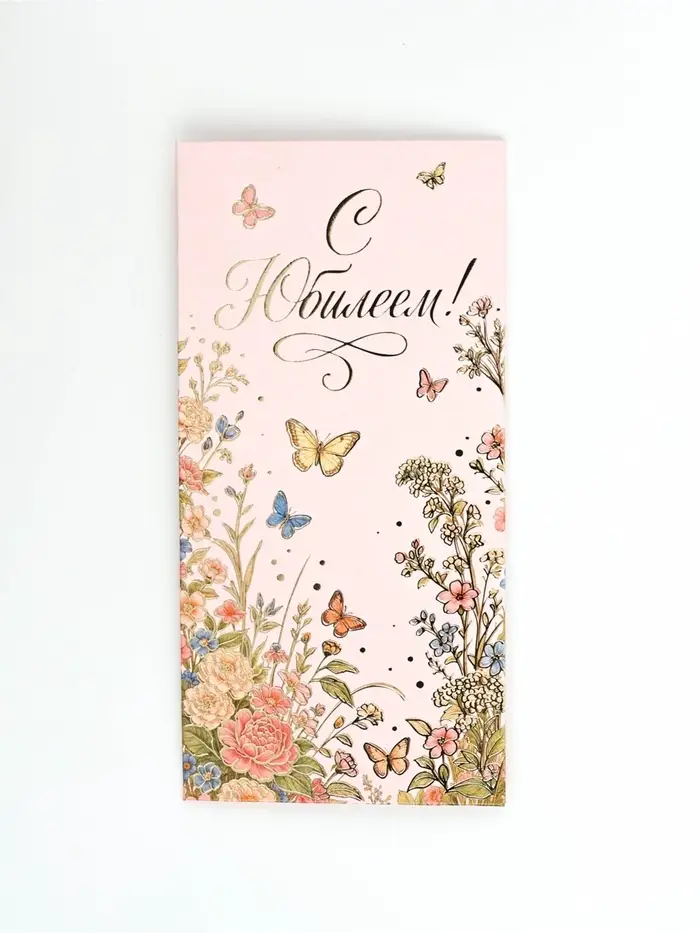 Конверт для денег "С Юбилеем!", цветы, тиснение, 16,5 х 8 см
