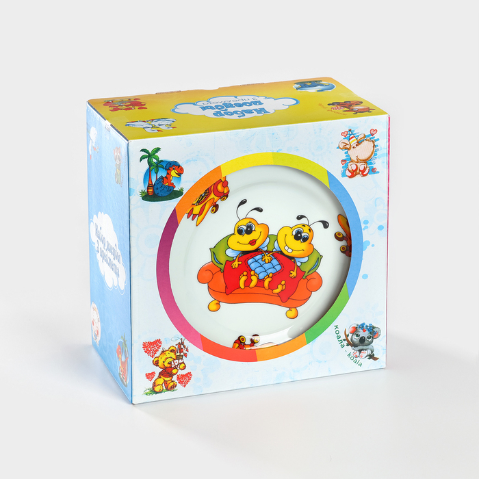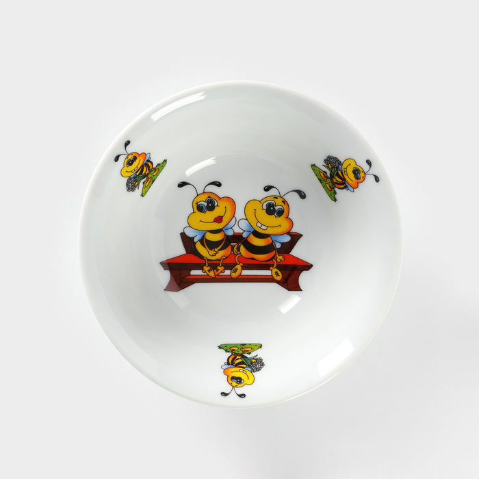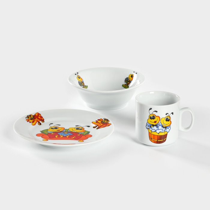 Набор фарфоровой посуды «Пчёлы», 3 предмета: кружка 200 мл, салатник 350 мл, тарелка мелкая d=16,5 см, рисунок МИКС