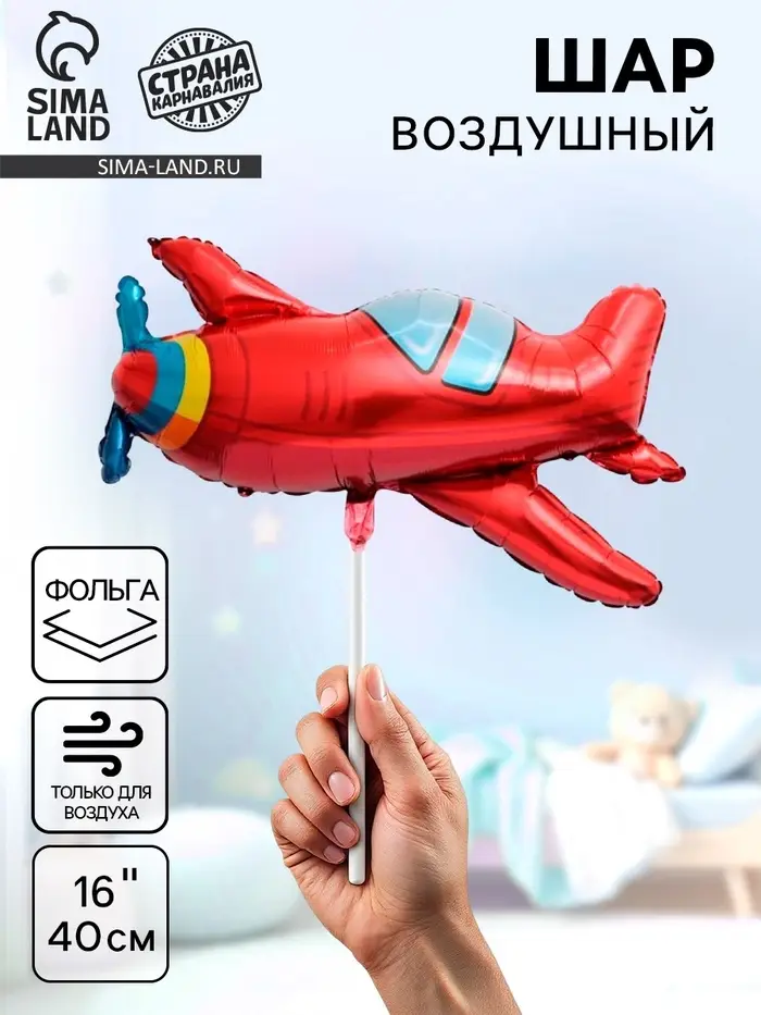 Воздушный шар фольгированный 16" «Самолёт», фигура, для палочки
