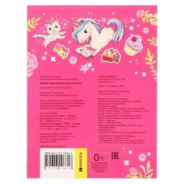 100 наклеек. Милые единорожки 8 стр.