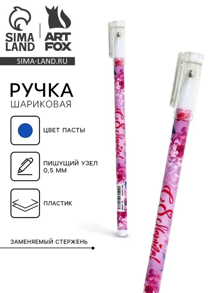Ручка шариковая, пластик с колпачком «С 8 Марта!», синяя паста, шариковая 0.5 мм