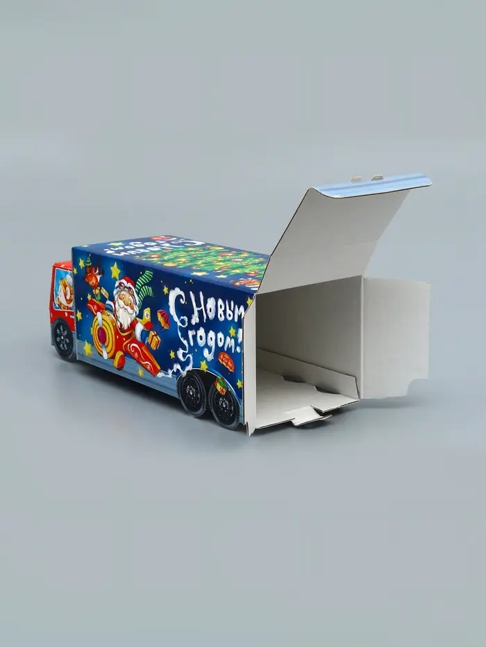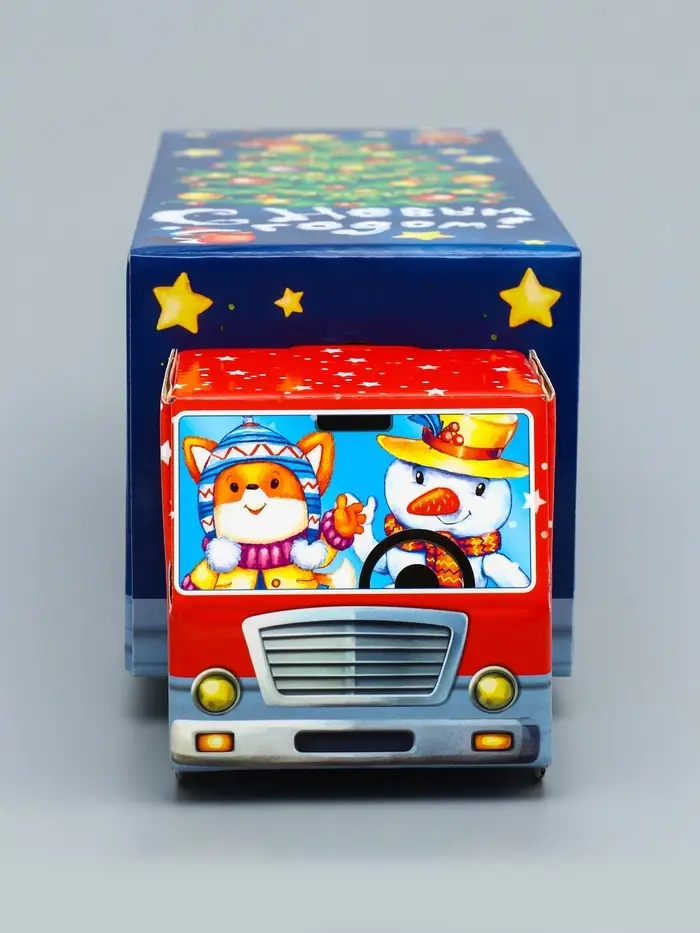 Подарочная коробка Новогодняя Фура «Новогодний пилотаж» с анимацией 36×15×10 см