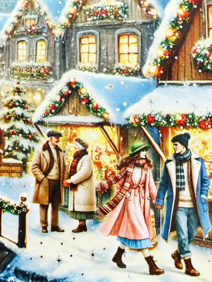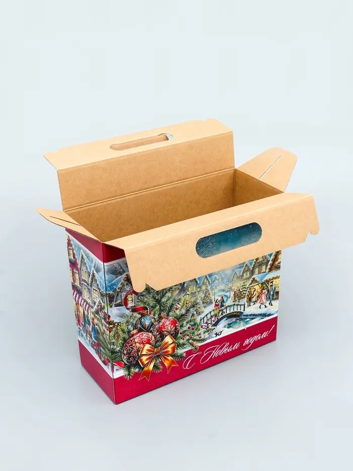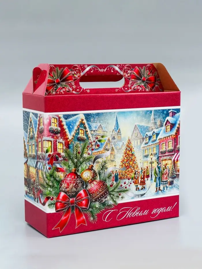 Коробка подарочная новогодняя «Рождественский город» 34×14×35.5 см