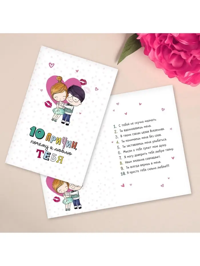 Открытка «10 причин, почему я люблю тебя», фактурная бумага ВХИ, 12 × 18 см