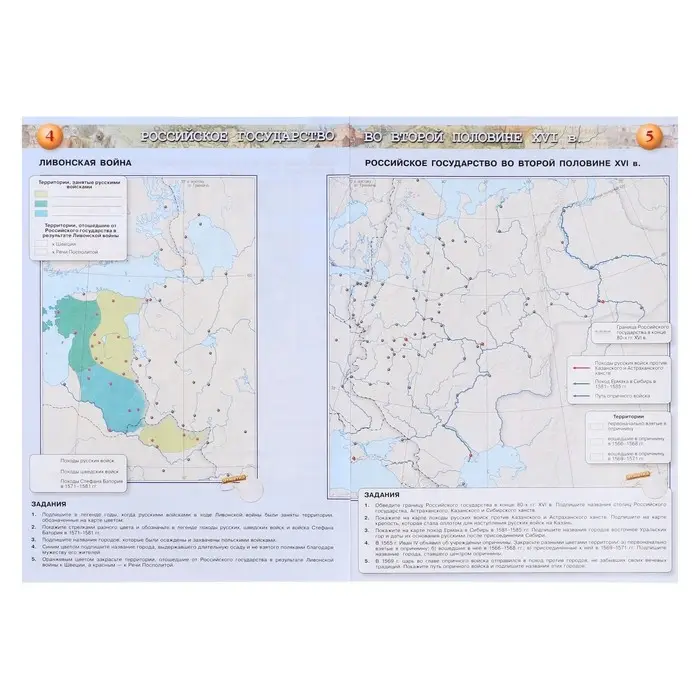- Цветные контурные карты с объёмным изображением рельефа для лучшего восприятия географических и исторических особенностей.