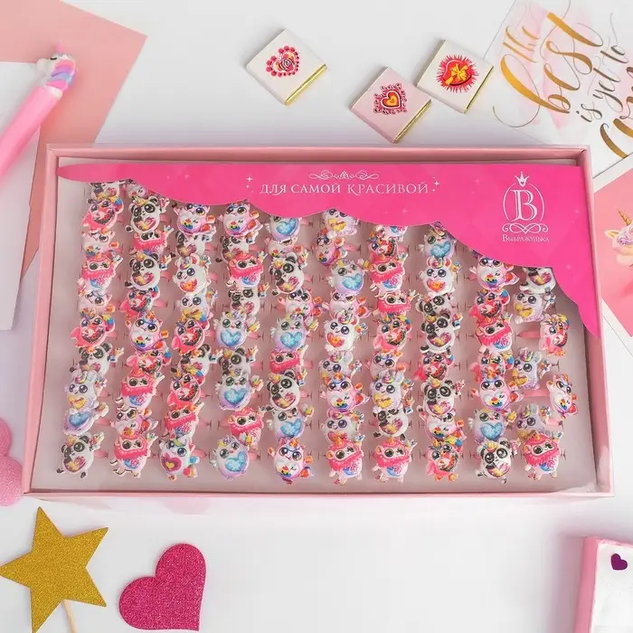 Кольцо детское «Выбражулька» ассорти для девочек, форма МИКС, цвет МИКС, безразмерное