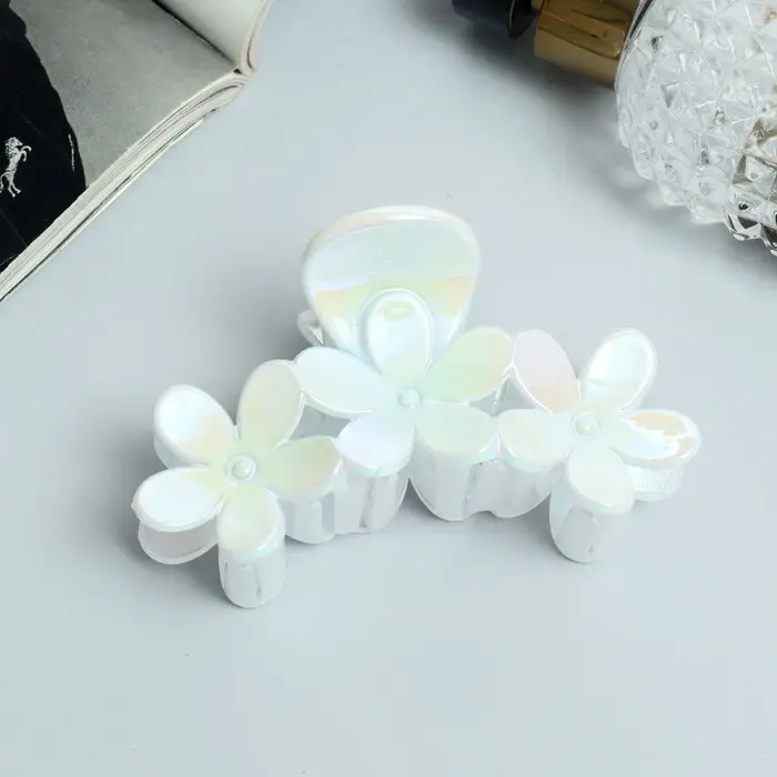 Краб для волос "Лунара" ромашки, 8,5 см, белый