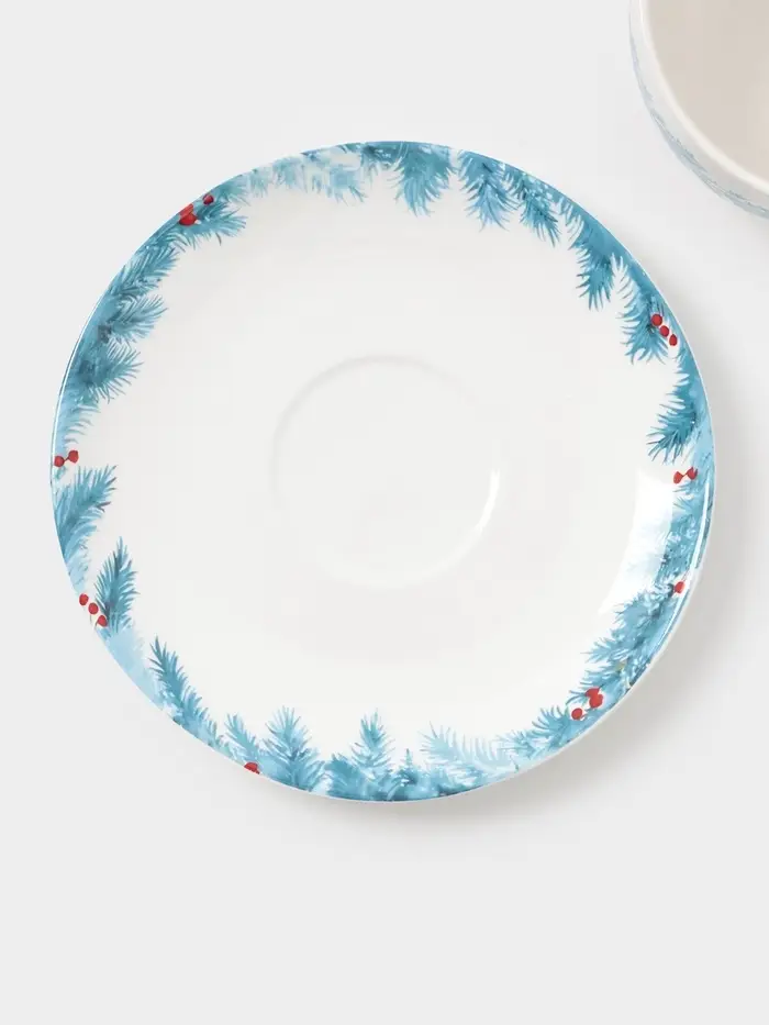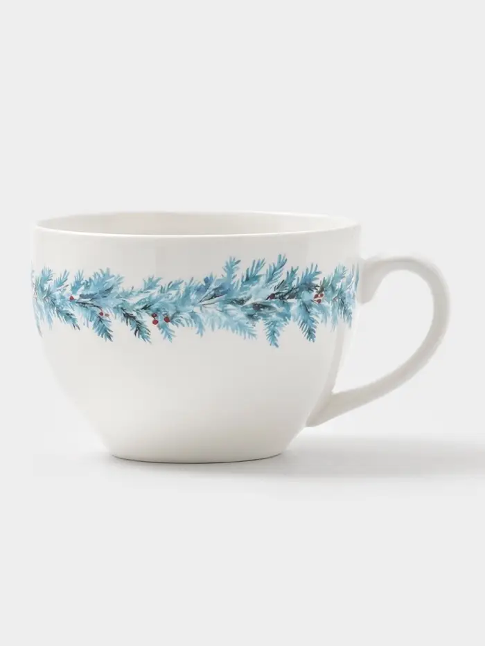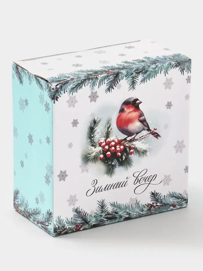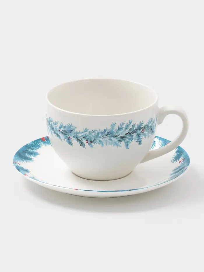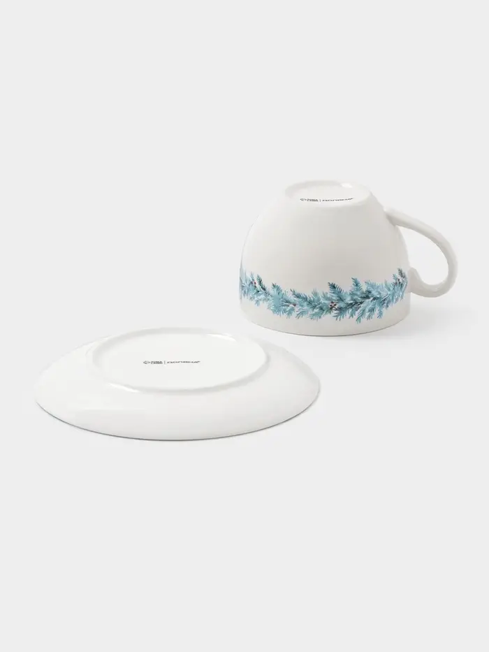 Чайная пара новогодняя «Зимний вечер», 2 предмета: чашка 210 мл, блюдце d=15 см, фарфор, белая