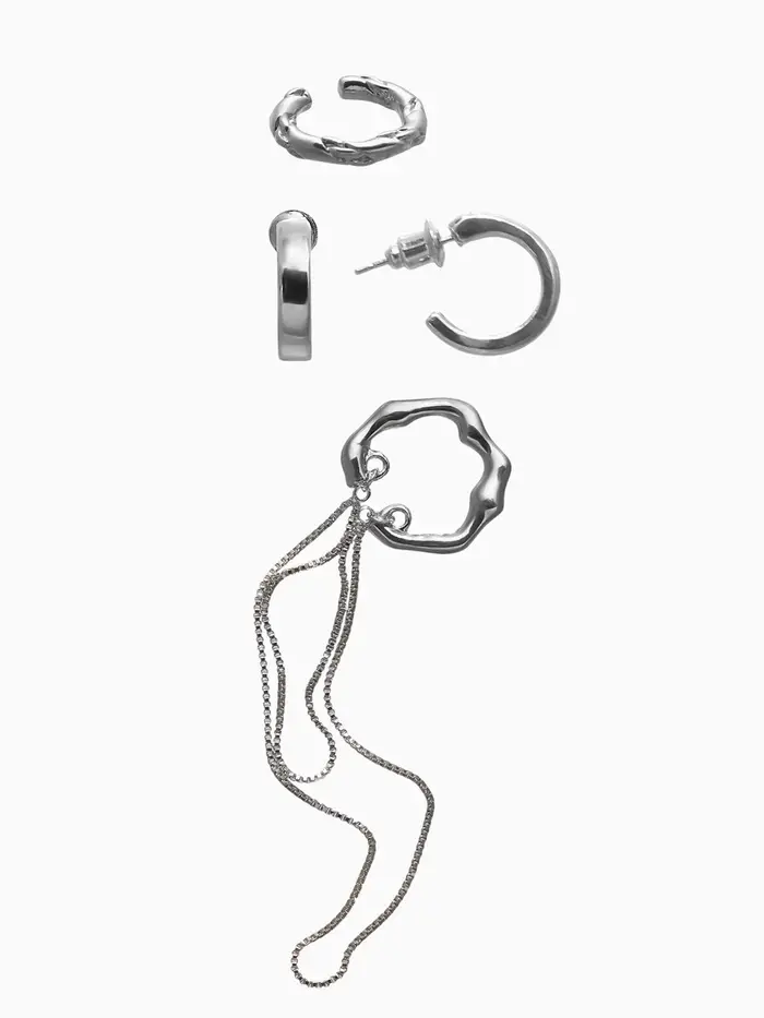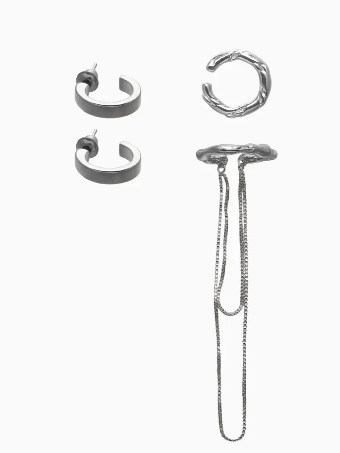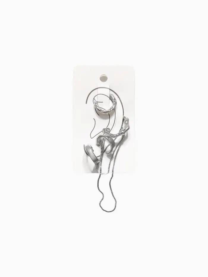 Набор серьги и каффы 4 шт. "Минимализм" водопад, цвет серебро