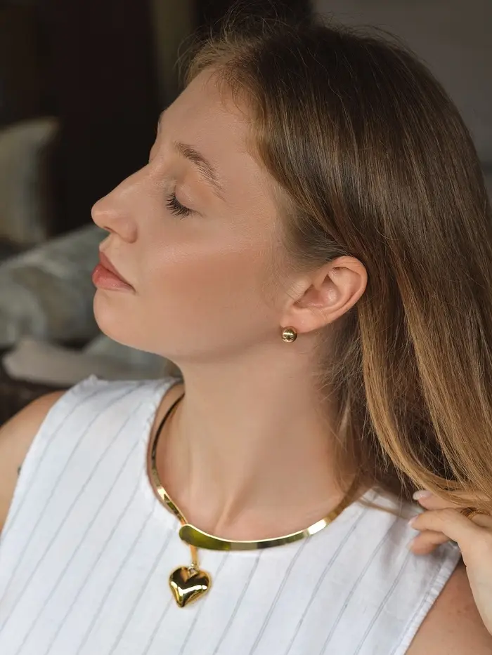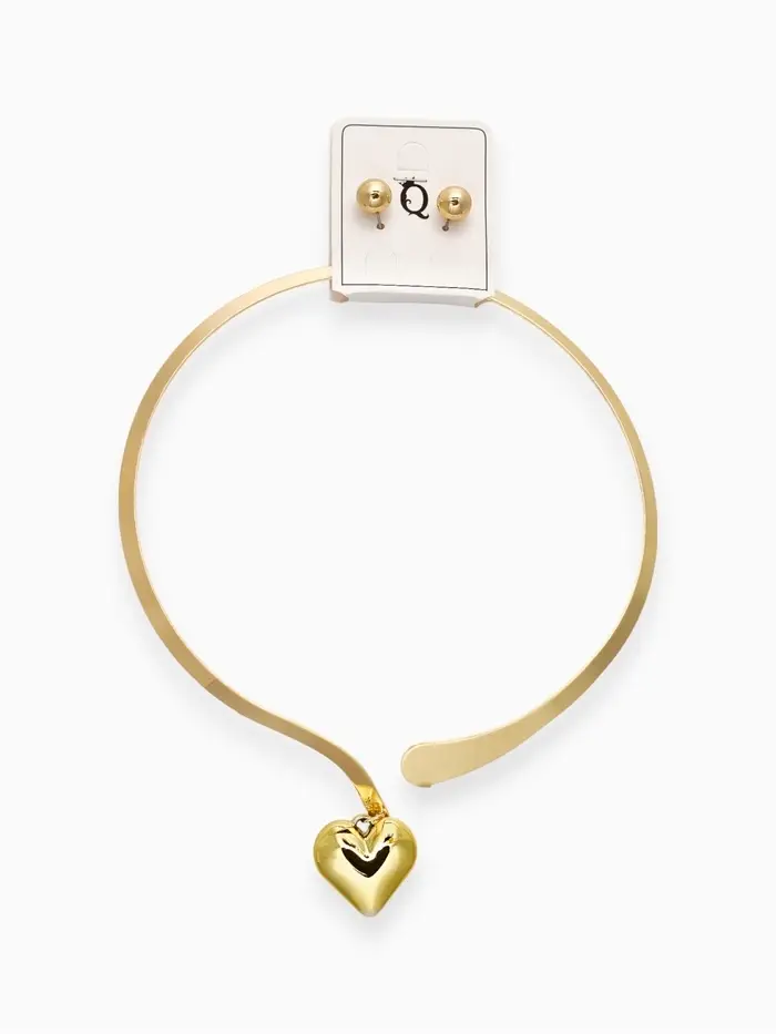Набор 2 предмета: серьги, чокер «Обруч» сердце, цвет золото