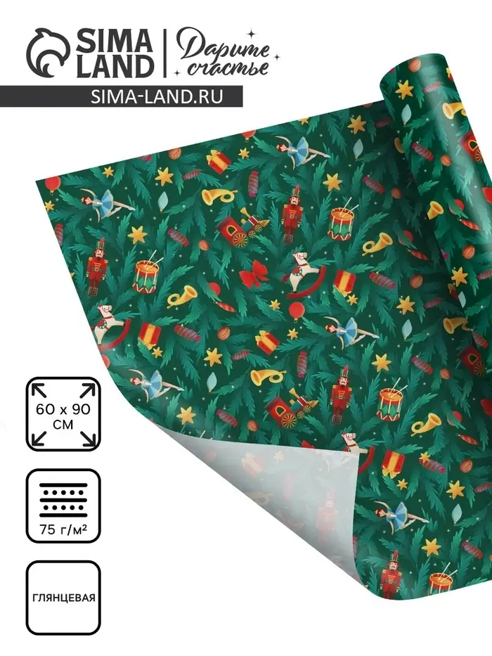 Бумага упаковочная глянцевая «Щелкунчик», 60×90 см
