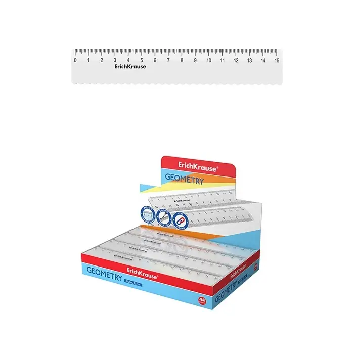 Прозрачная линейка из высококачественного пластика. Четкая печать односторонней шкалы. Длина разметки – 15см.