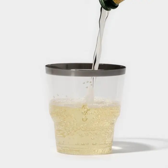 Бокал пластиковый одноразовый для вина «Кристалл», 200 мл, с металлизированными каемками, цвет прозрачный, 6 шт/уп
