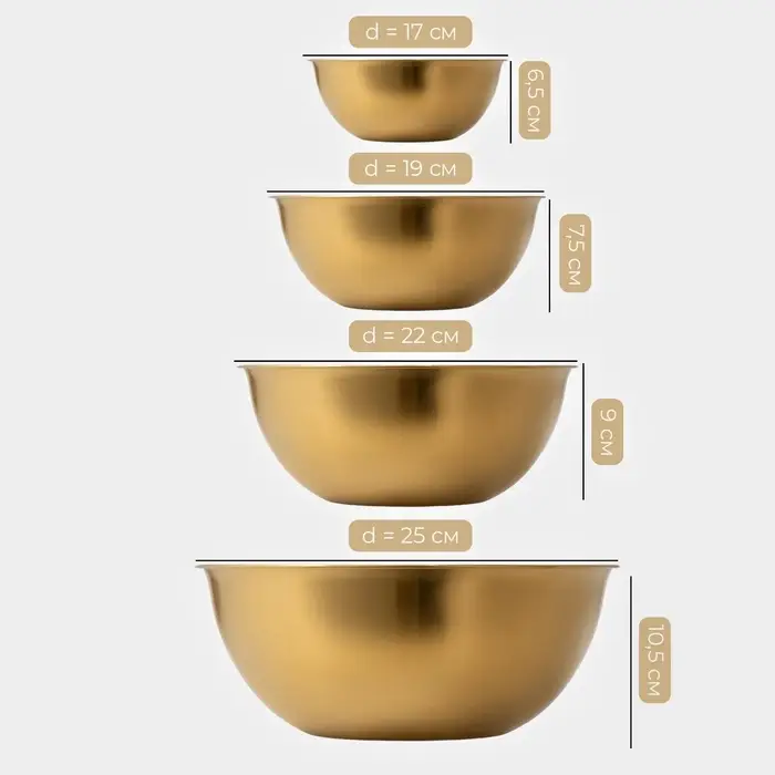 Набор из четырех мисок-салатников: золотистый блеск и безупречная функциональность на вашей кухне!