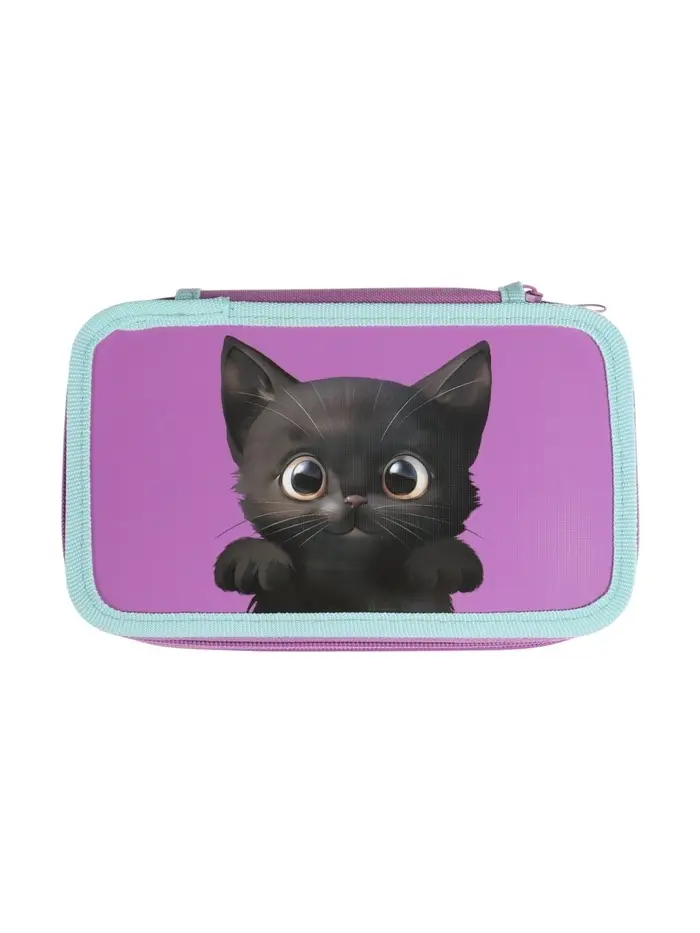 Пенал 3 секции, 125 х 205 х 55 мм, Calligrata 30П26/3 "Кот чёрный", ламинированный картон