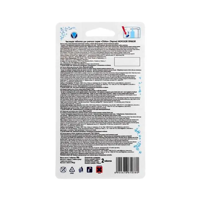 Чистящие таблетки для унитаза Chirton "Морской прибой", 2 шт, 50 гр