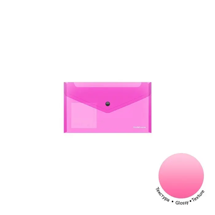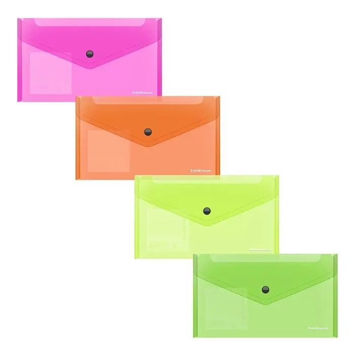 Папка-конверт на кнопке С6, 180 мкм, ErichKrause Glossy Neon, полупрозрачная, микс
